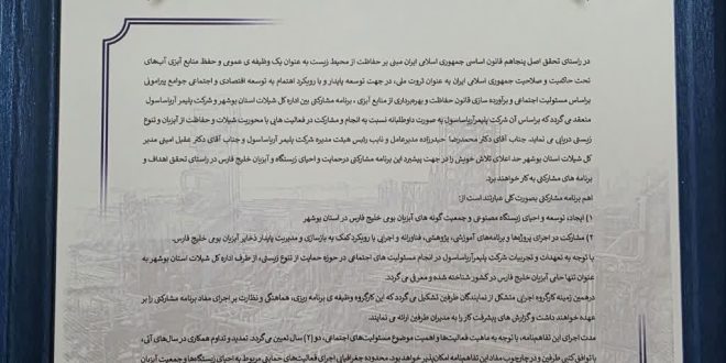به گزارش روابط عمومی اداره کل شیلات استان بوشهر تفاهمنامه همکاری مشترک با هدف تقویت تأمین مالی و حمایت از زنجیره تولید میگو، با حضور مسئولان استانی در غرفه ادارهکل شیلات استان بوشهر در چهارمین نمایشگاه ملی تخصصی صنایع شیلاتی بوشهر به امضا رسید. این تفاهمنامه میان عقیل امینی مدیرکل شیلات استان بوشهر، مرتضی پروانه مدیرکل تعاون، کار و رفاه …